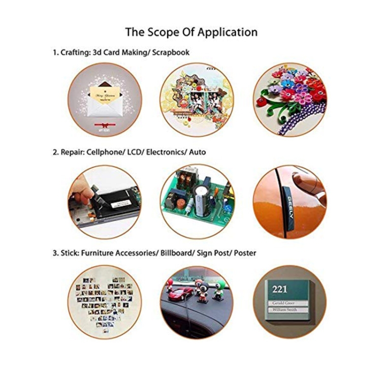 7. Wide Application: Widely using for cell phone screen protector, LCD panel display, tablet PC, lens, battery, and camera cover, rubber pads, billboard, advertising, sign post, poster, 3d card making, home, office, workshop etc.