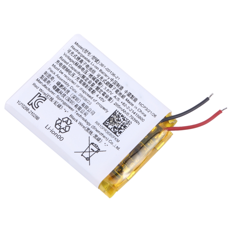 | Model | For Garmin Venu SQ 361-00136-21 205mAh, For Garmin Forerunner 158 361-00140-01 158mAh |
