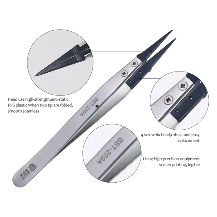 BEST BST-259A Stainless Steel Snti Static Tweezer