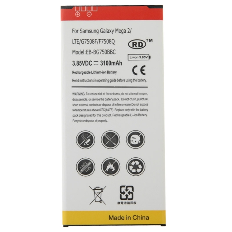 EB-BG750BBC 3.85V / 3100mAh Rechargeable Li-ion Battery for Galaxy Mega 2 / LTE / G7508F / F7508Q