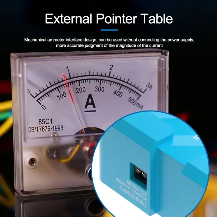 6. External pointer meter, mechanical ammeter interface design, can be used without connecting the power supply, more accurate judgment of the size of the current