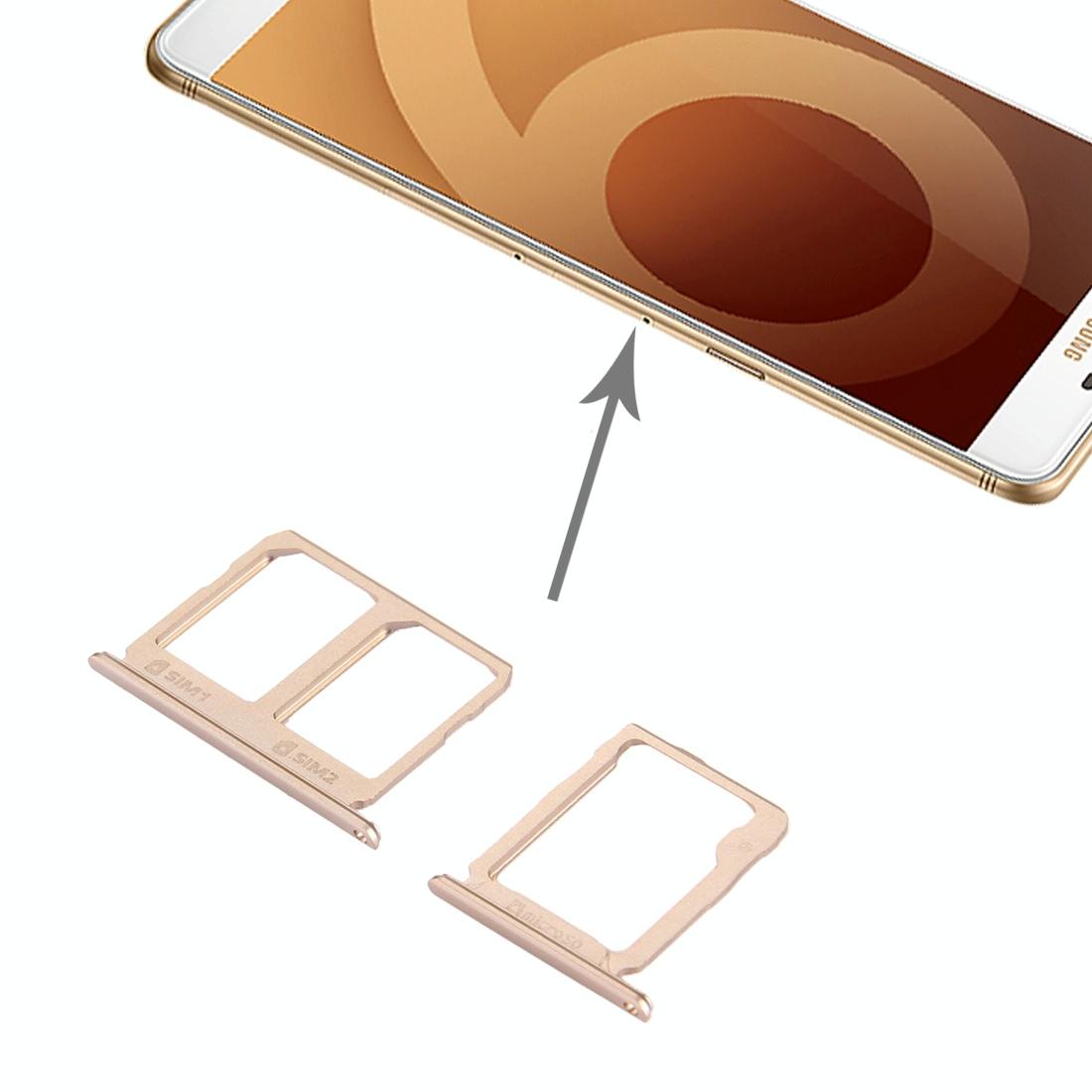 For Galaxy C9 Pro / C9000 SIM Card Tray + Micro SD Card Tray (Gold)