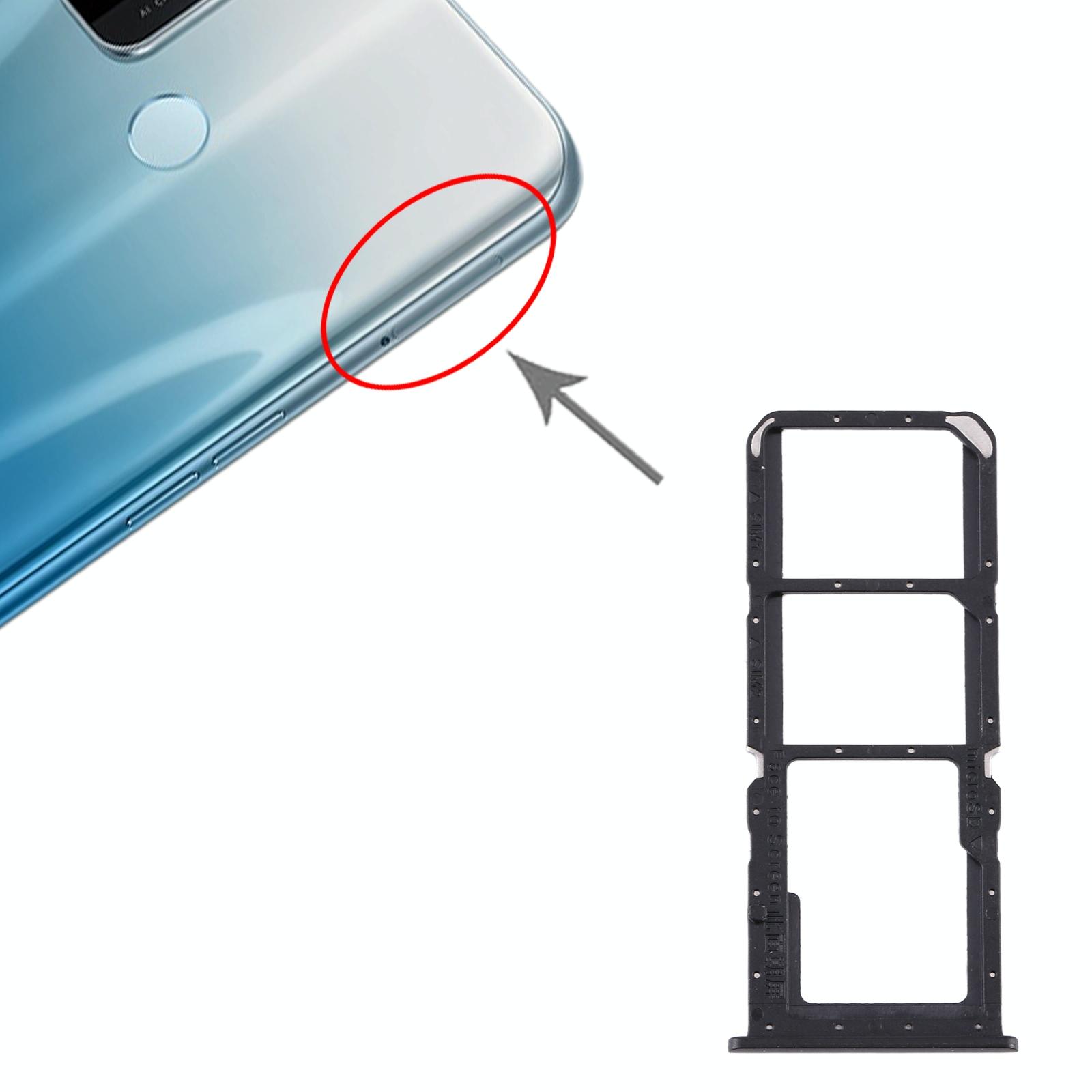 For OPPO A32 / A53 4G / A33 2020 / A53s / A11s PDVM00 SIM Card Tray + SIM Card Tray + Micro SD Card Tray(Black)