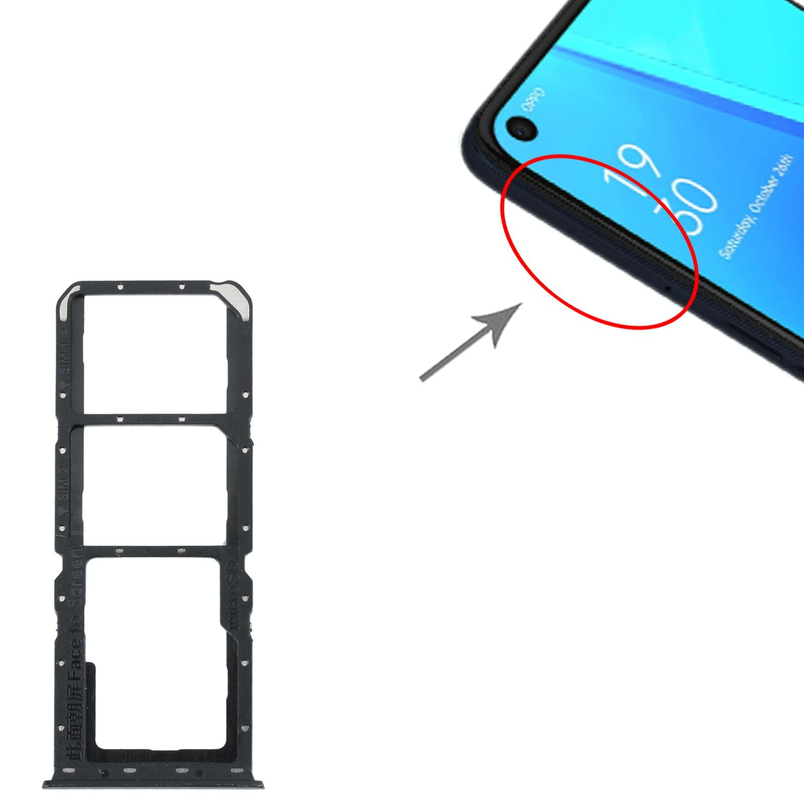 For OPPO A52 4G SIM Card Tray + SIM Card Tray + Micro SD Card Tray (Black)