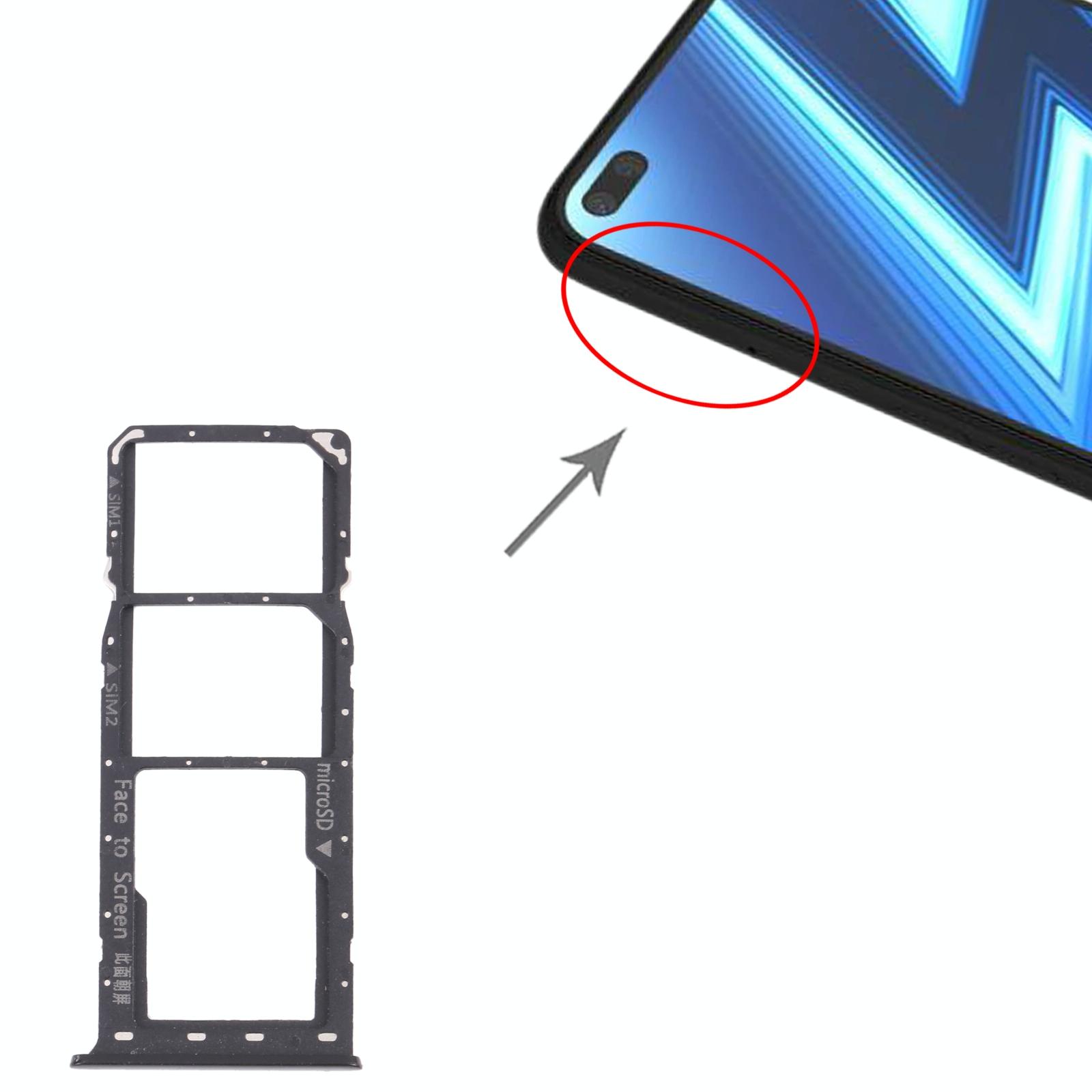 For OPPO Realme 6 Pro RMX2061, RMX2063  SIM Card Tray + SIM Card Tray + Micro SD Card Tray (Black)