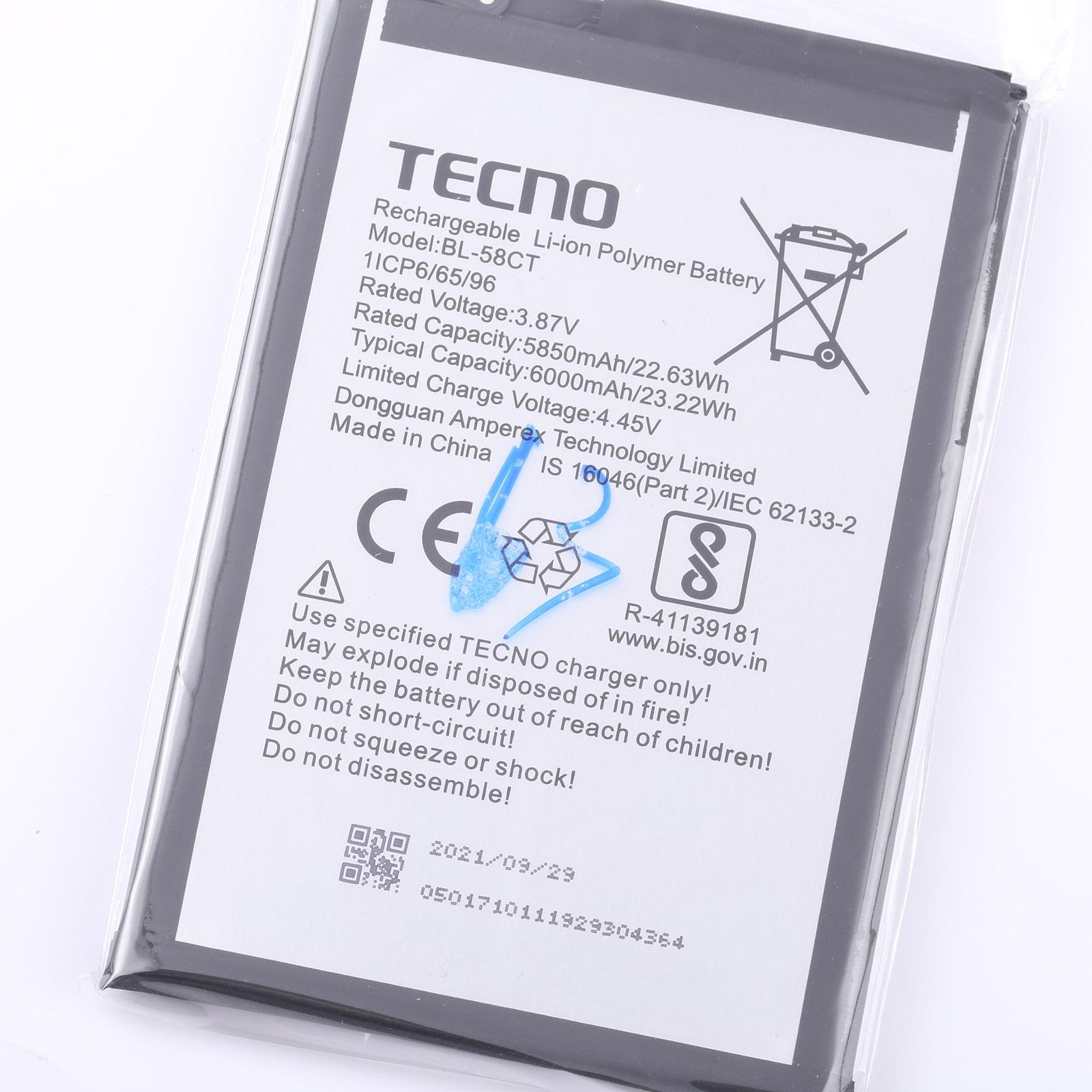 For Tecno Spark 7 / Spark 7T Battery Replacement BL-58CT 6000mAh