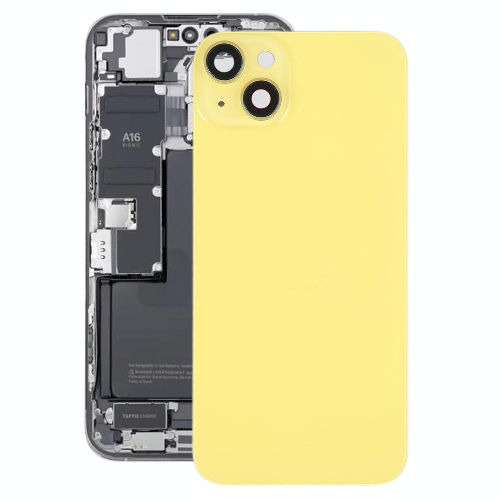 Glass Battery Back Cover with Holder for iPhone 14(Yellow)