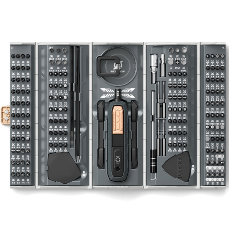 1. The concept of a high-volume container has been integrated into the design of the tool kit to provide as many screwdrivers and accessories as possible in a limited space