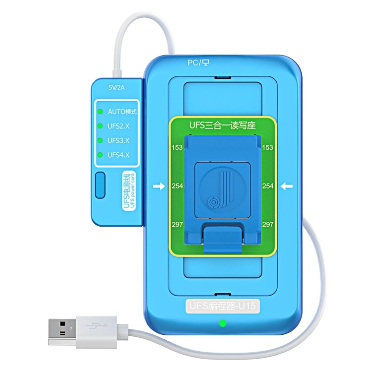 1. U15 UFS Programmer, ultra-thin, fast, and stable, supports UFS 4.0, low-power CPU, ensuring high-speed read and write for a long time, for UFS Nand reading, writing, capacity expansion, and repair