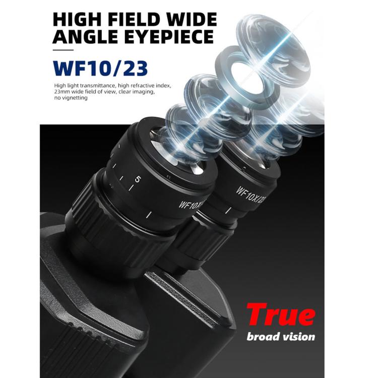 4. WF10X/23MM High field of view wide-angle eyepiece! High light transmittance, high refractive index, 23mm wide field of view, clear imaging without vignetting