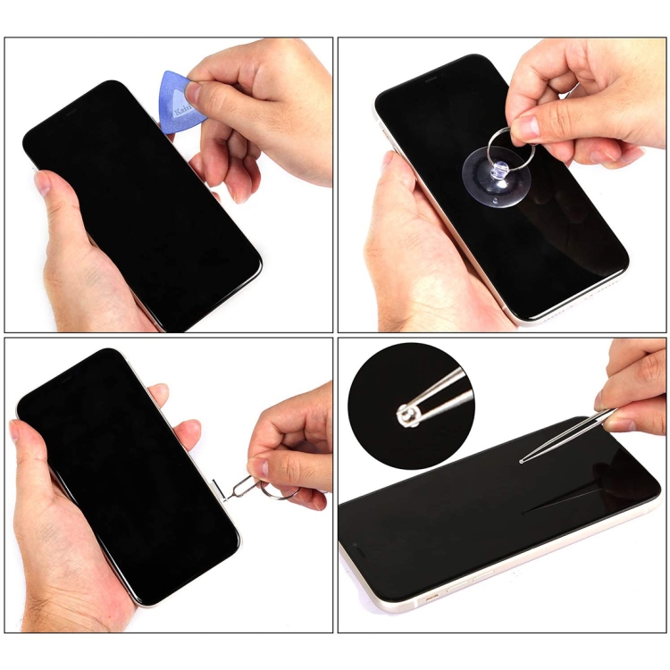 1. 36 in 1 professional electronic repair tool kit includes 26 screwdriver heads, 1 driver handle, 1 tweezers, 1 Metal double-ended pry bar, 3 Plastic double-ended pry bar, 3 Ultra-thin triangle picks and a suction cup.