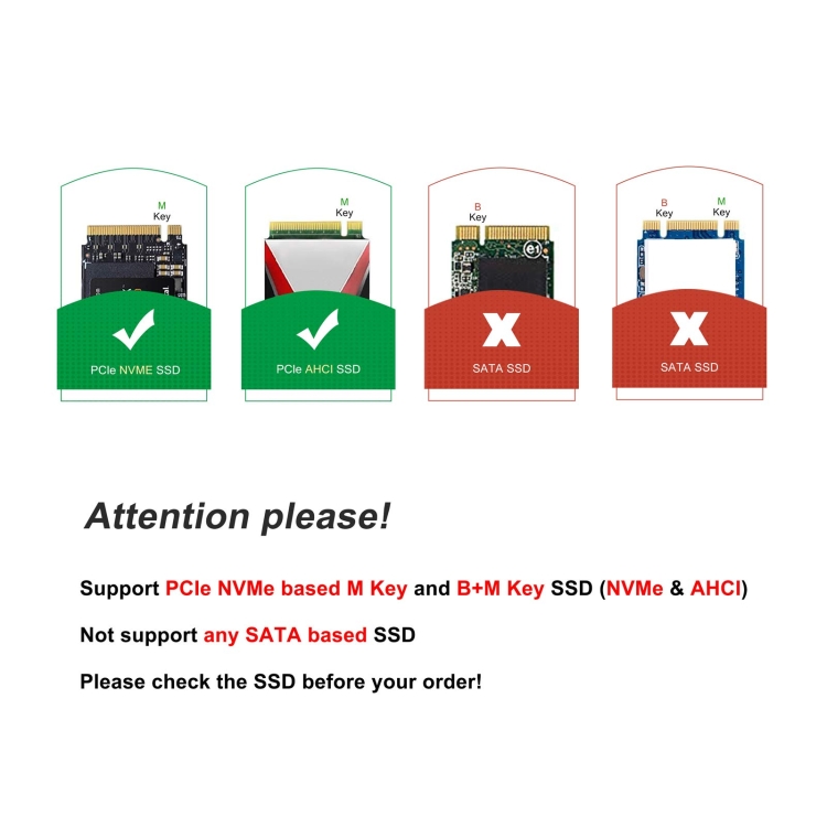 3. Only supports PCIe NVMe-based M Key and B+M Key SSD (NVMe & AHCI), does not support any SATA-based SSD