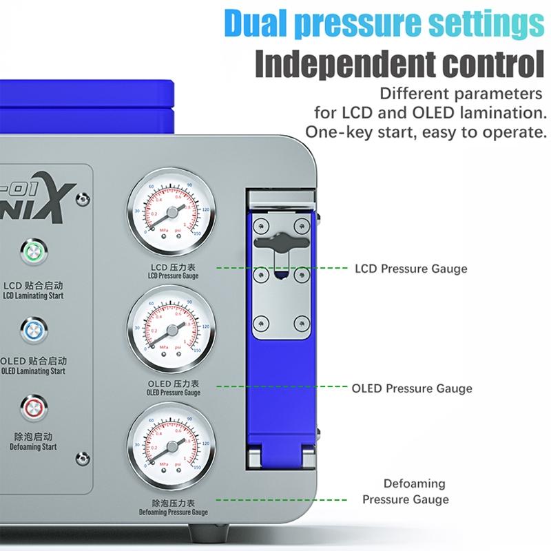 4. Dual regulator settings, independent control, LCD and OLED laminating parameters are different, one-key start, convenient operation.
