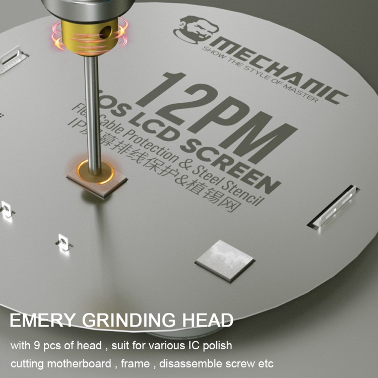 7. The product adopts emery grinding head and is equipped with nine grinding heads at the same time, which is suitable for grinding various chip ICs, cutting motherboards, brackets, removing screws, etc.