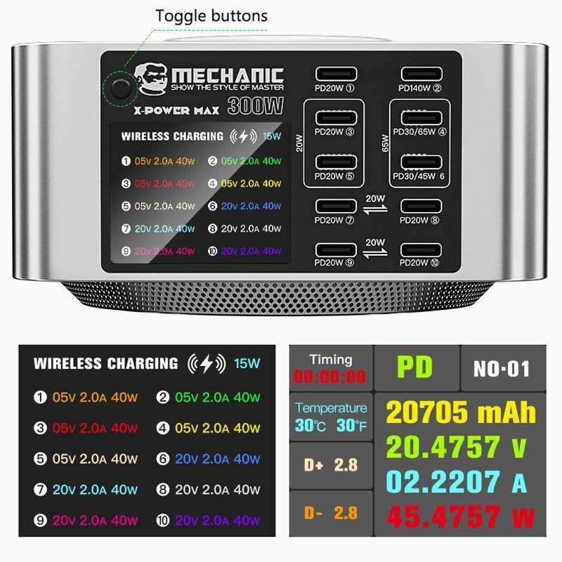 Mechanic X-Power Series Multiport Digital Display USB Charger Station with Wireless Charging, Total Power:300W(EU Plug)