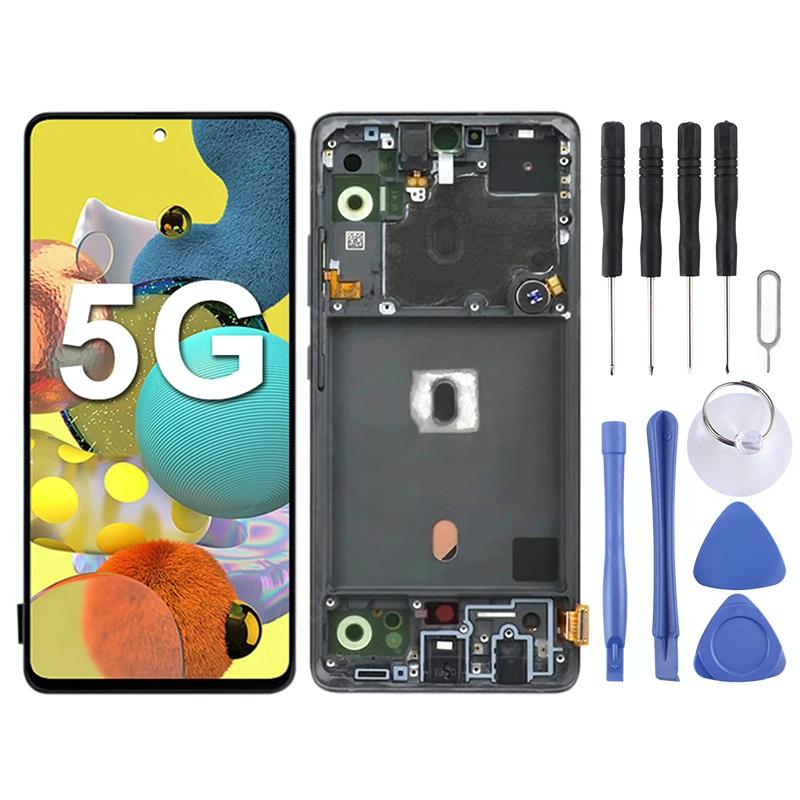 1. Replacement LCD display + touch screen digitizer assembly with frame for Samsung Galaxy A51 5G SM-A516.