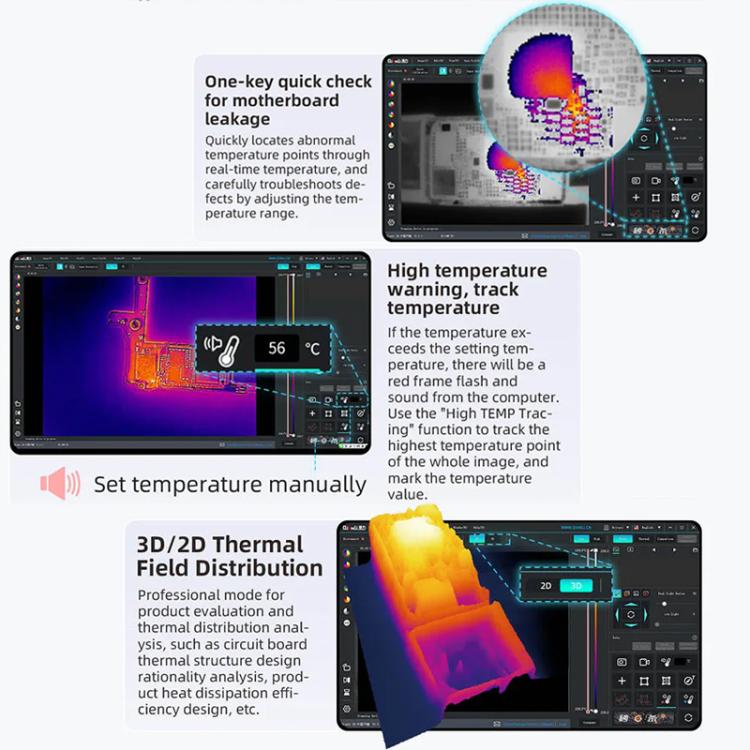 19. Application Function: One-key quick check, high and low-temperature tracking, partial area temperature measurement Partial magnification, comparative analysis, capture, video
