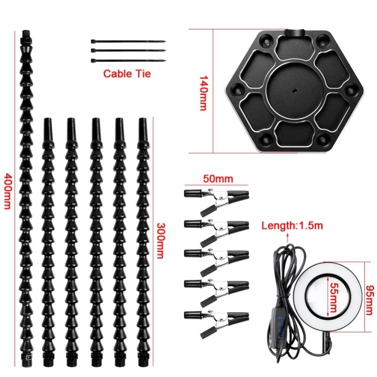 13. Aluminum alloy base: diameter 140mm x height 11mm, universal joint tube length: 300-400mm (without accessories)