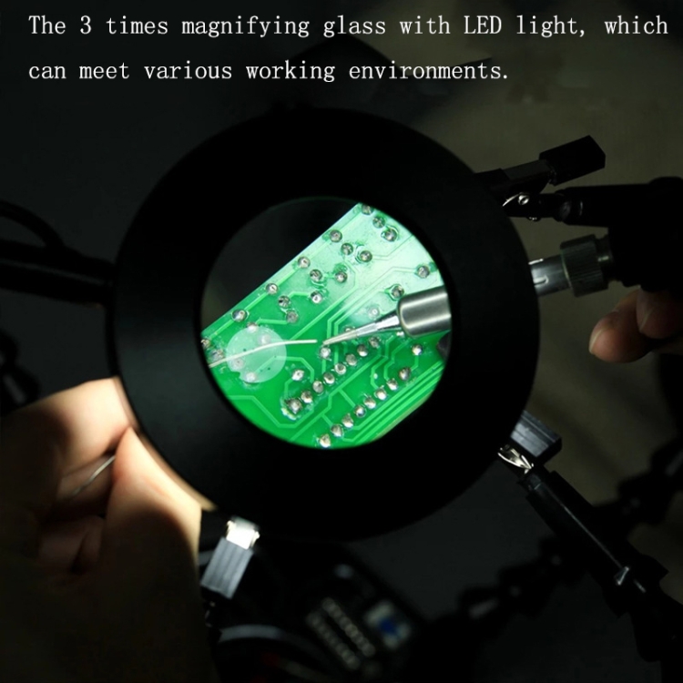 11. The 3 times magnifying glass with LED light, the color temperature of the LED light can be adjusted in 3 levels, and the brightness can be adjusted in 11 levels, which can meet various working environments.