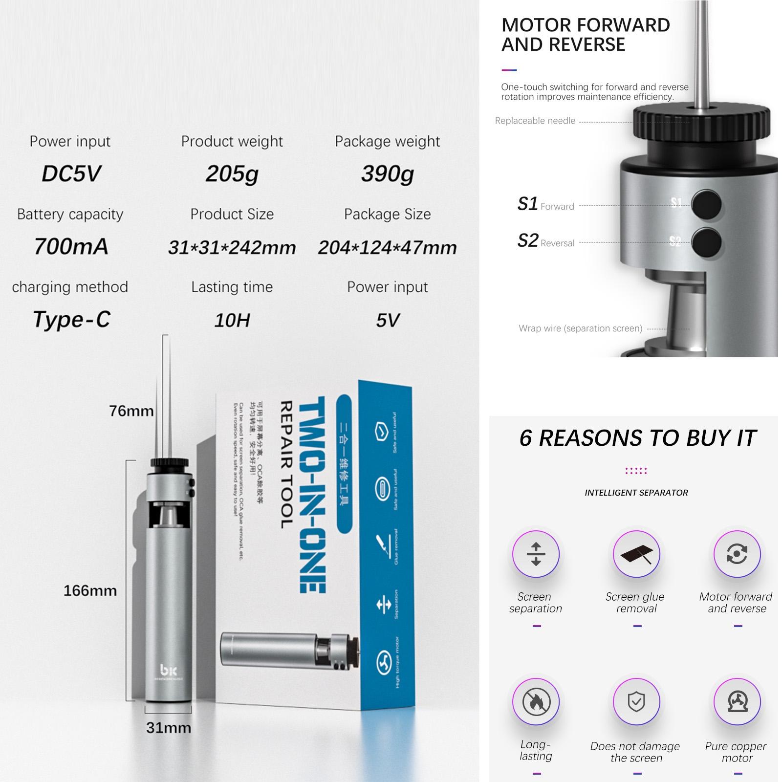 6. TBK-002 two-in-one smart glue remover, quickly removes curved adhesive/hard adhesive, OCA adhesive/original adhesive, and can also be used as a detachable screen