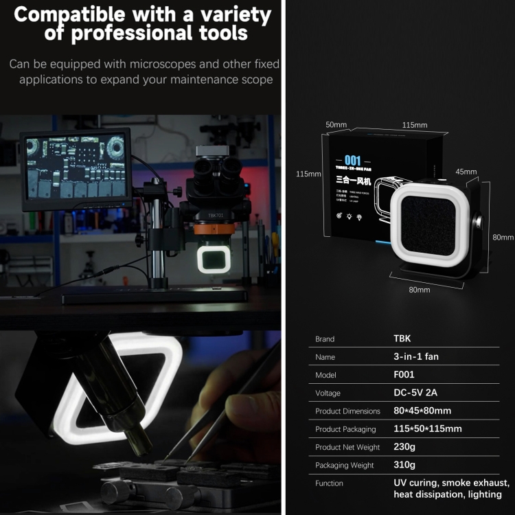 TBK F001 3 in 1 Smoking & UV Curing & Filtration Smoke Exhaust Multifunctional Fan