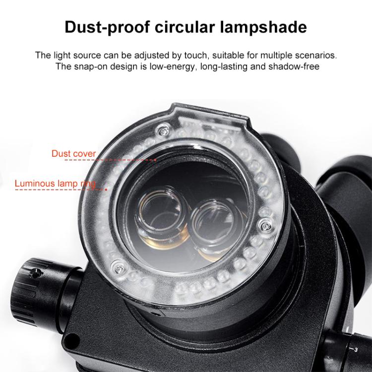 4. Dust-Proof Ring Light Cover with touch-sensitive brightness control; suitable for various work environments; snap-on design with low power consumption, long lifespan, and shadow-free illumination